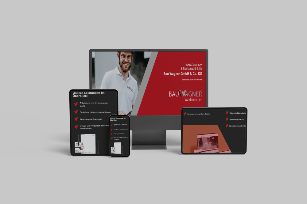 Neue Website, neues Design, klare Linie: Für das Bau Wagner haben wir einen modernen Markenauftritt geschaffen – vom Logo bis zur Webpräsenz. Übersichtlich, zeitgemäß und mit Wiedererkennungswert.